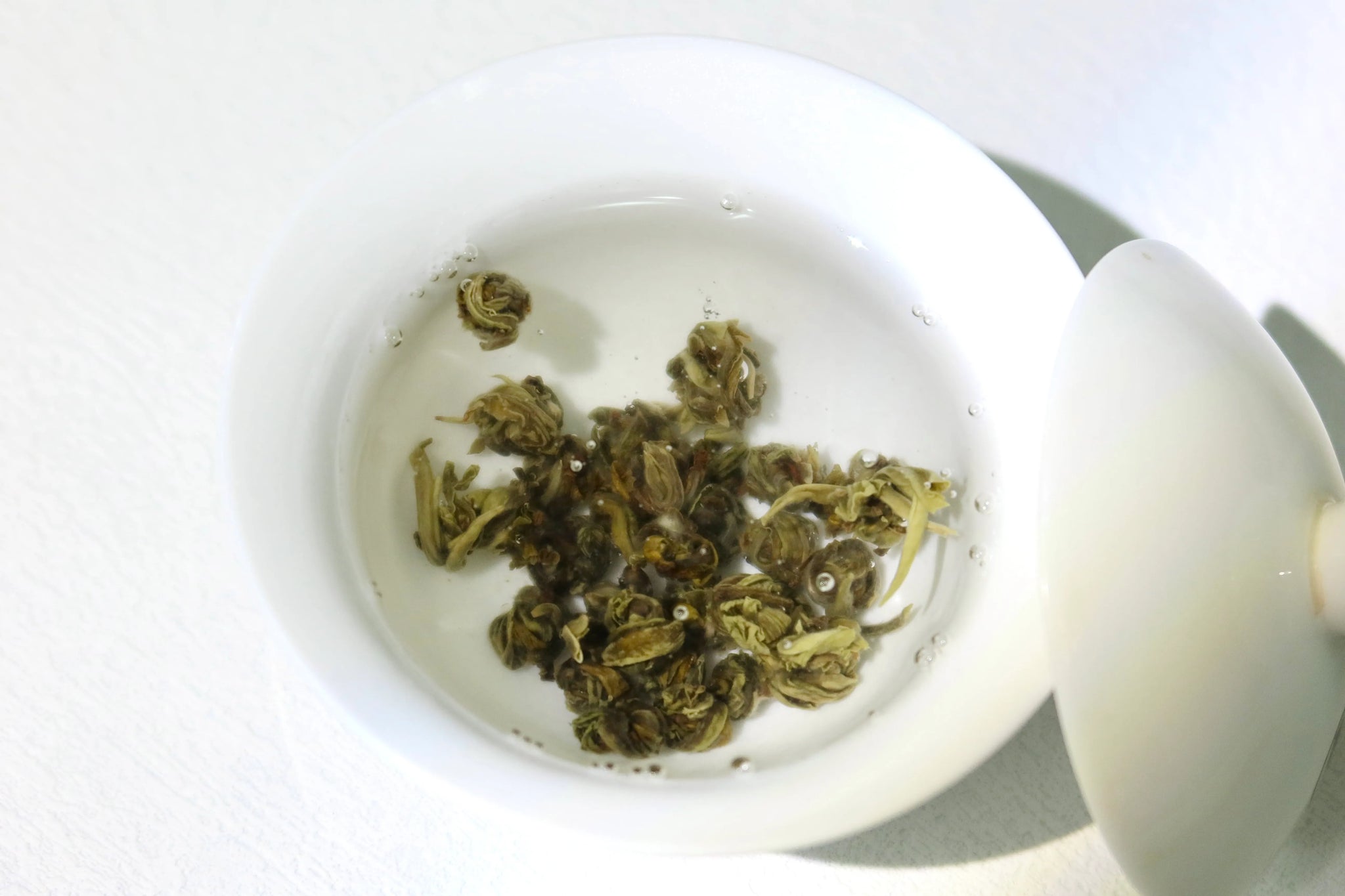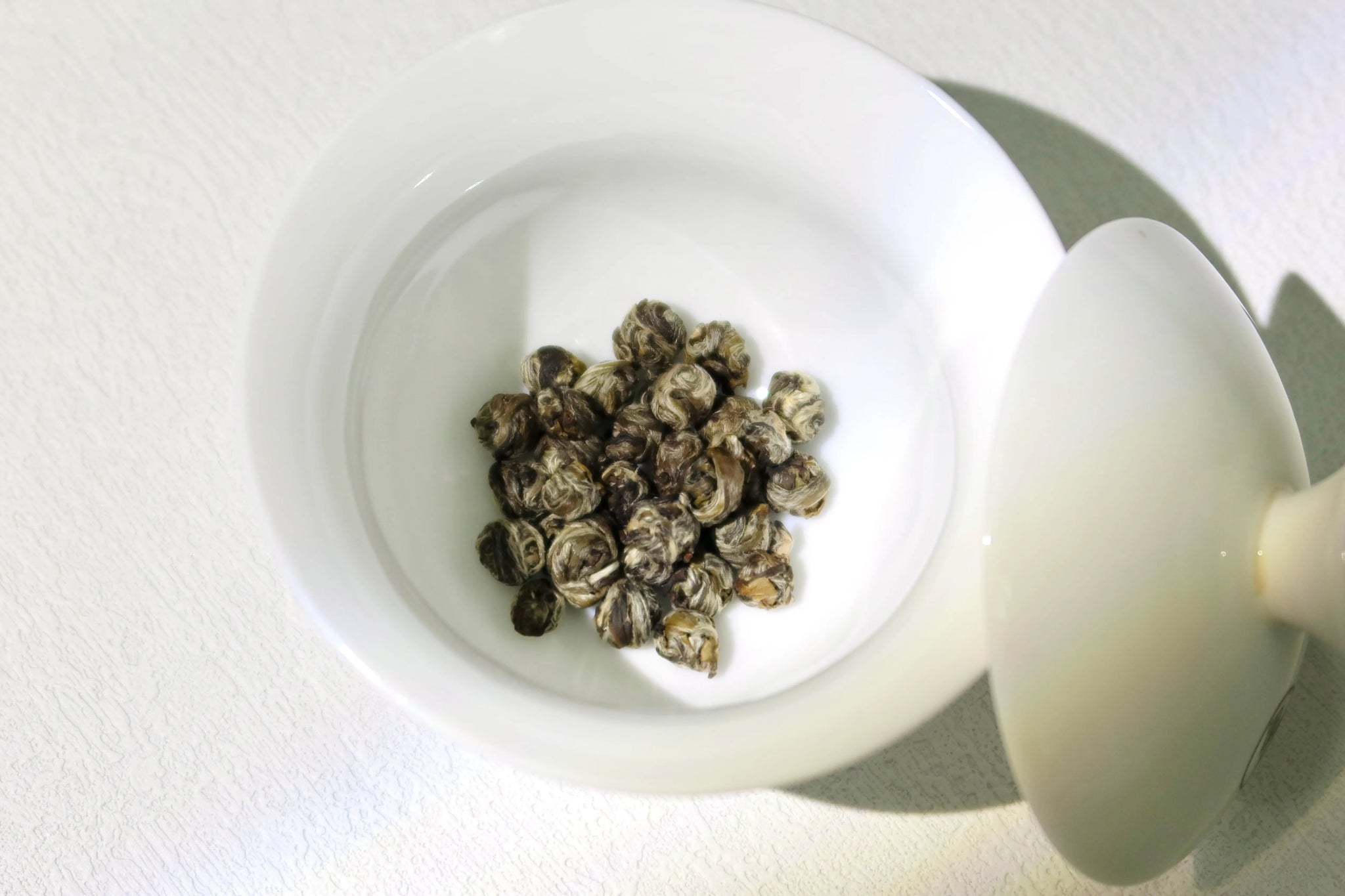 緑茶の新芽を丸く揉捻し、ジャスミンの花を3回以上香りづけしたもの。形が真珠に似ていることから命名された。